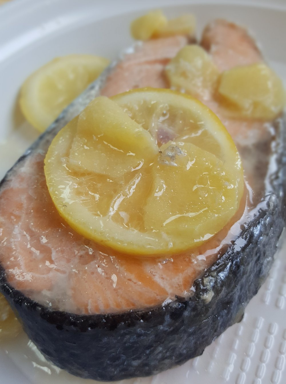 Vi servirà un filetto di salmone per persona, uno spicchio d’aglio, mezzo limone e un pezzo di zenzero. Mettete in una padella tutti gli ingredienti e fate cuocere 2 minuti per lato, se necessario aggiungete un goccio di vino bianco, salate (non troppo) e servite!! Come promesso 5 minuti 😉