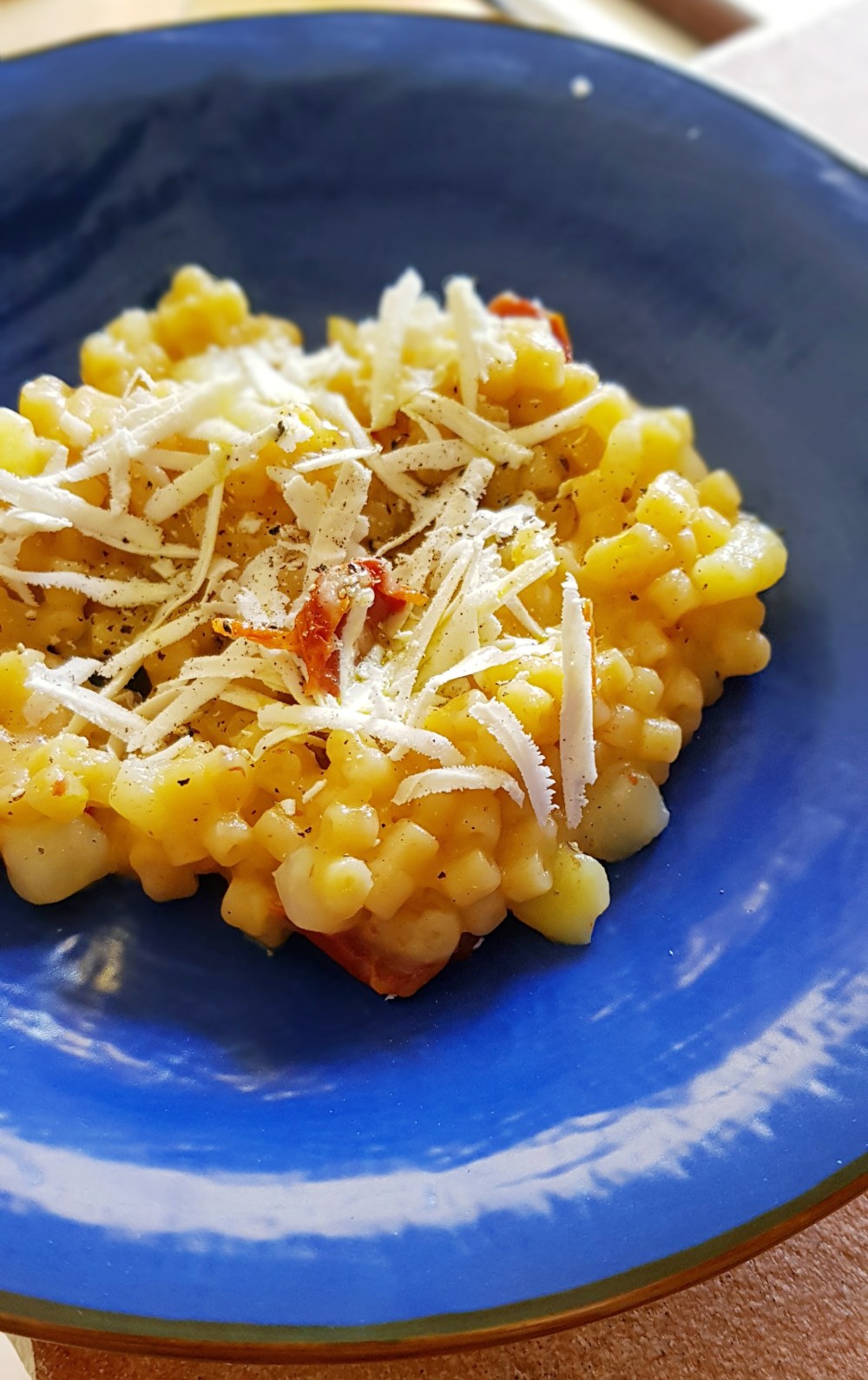 Quindi aggiungete la pasta, (per questa ricetta io ho usato i tubetti) e fate cuocere, aggiungete acqua (sempre calda) se necessario. Quando la pasta sarà cotta servite e aggiungete la ricotta salata grattugiata come nella foto.
