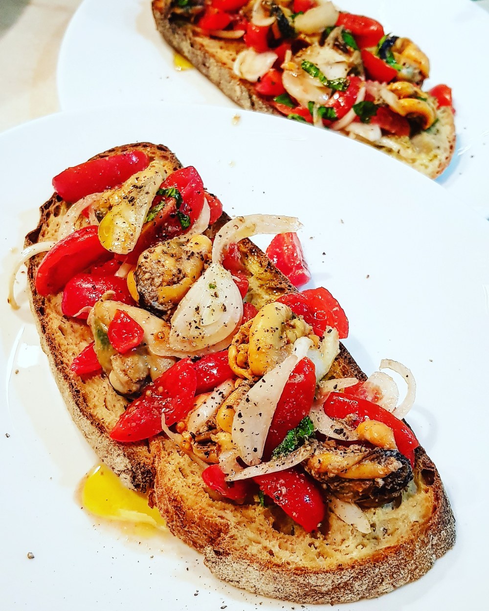 Io da buona olbiese, grazie alle buonissime cozze del mio golfo, ieri ho preparato le bruschette del marinaio.
