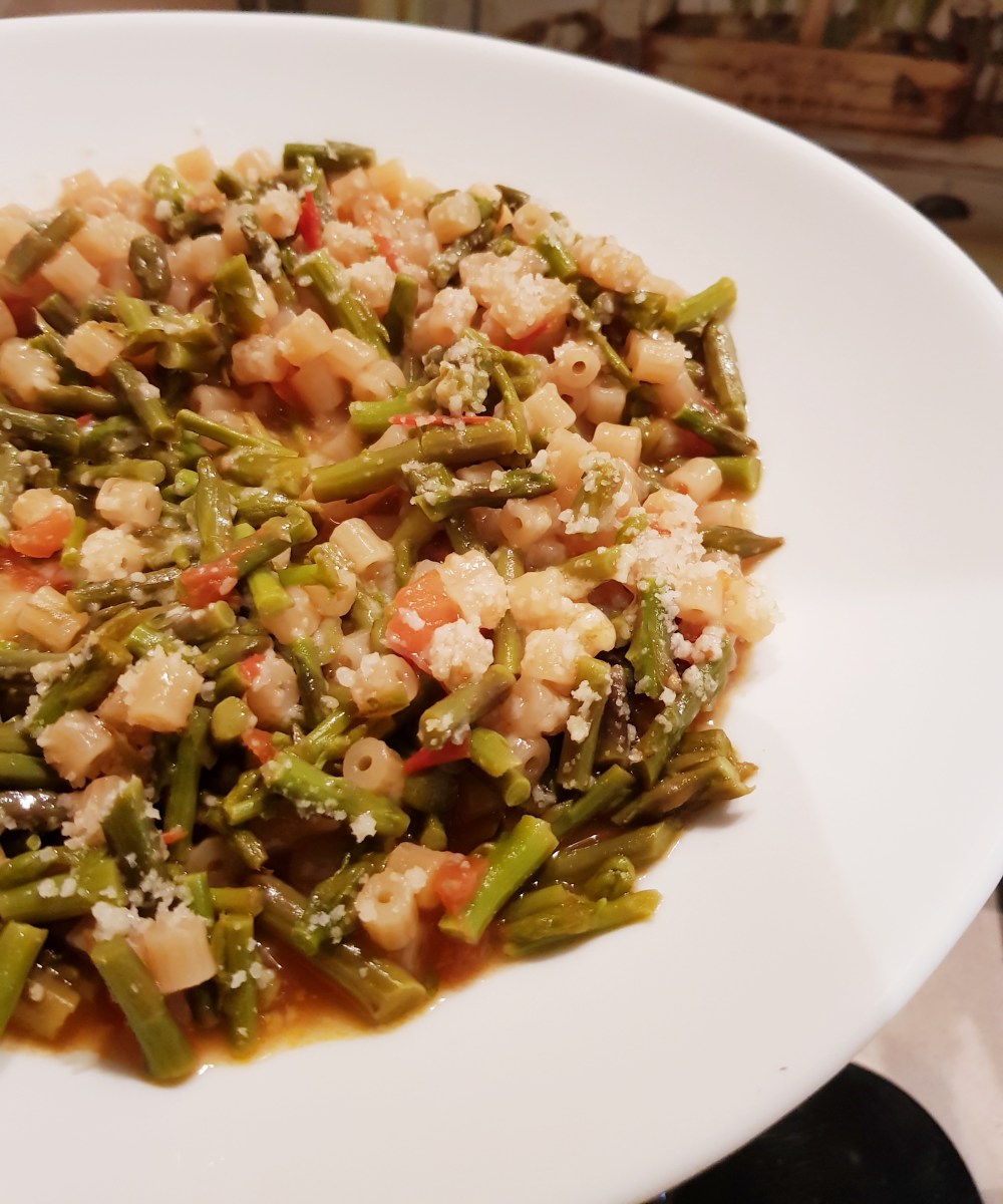 – 160 gr di pasta (io ho scelto i tubetti) – 1 mazzetto di asparagi – qualche pomodorino – aglio, sale e olio evo – pecorino sardo grattugiato a piacere